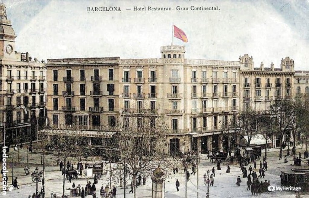 A finales del siglo XIX, la Plaça Catalunya y Las Ramblas eran el corazón palpitante de la vida social barcelonesa. Allí, en la esquina más privilegiada de la ciudad, abrió sus puertas el 14 de diciembre de 1884 el Café Restaurante Gran Continental, uno de los establecimientos más importantes y lujosos de su época.