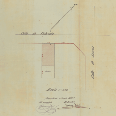 El Plano de Situación: Nos muestra la distribución clásica de las parcelas del Eixample ideadas por Ildefons Cerdà. El edificio ocupa la mitad de la parcela dando fachada a la calle València, mientras que la mitad posterior se reserva como un "Jardín" (tal y como indica el propio plano) abierto al patio interior de la manzana, garantizando luz y ventilación.