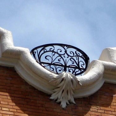 El coronamiento: La parte superior de la fachada destaca por su sinuosidad, rematada con dos pequeños balcones semicirculares de forja que dan un acabado elegante y distintivo al edificio.