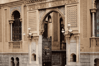 El talento de Domènec Balet también se aplicó a resolver la integración de los flujos de espectadores en el denso tejido urbano, como demuestra su proyecto de 1871 en el número 24 del Paseo de Gracia. Para responder a la demanda de una burguesía que buscaba lo exótico, Balet diseñó un conjunto arquitectónico de estilo neomudéjar formado por dos fincas idénticas: la Casa Pere Llibre y su gemela, la hoy desaparecida Casa Vilumara (demolida en 1915).