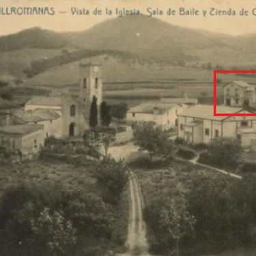 El archivo documental cuenta con una reveladora postal fechada en el año 1911, titulada "Vallromanas - Vista de la Iglesia, Sala de Baile y Tienda de Comestibles".