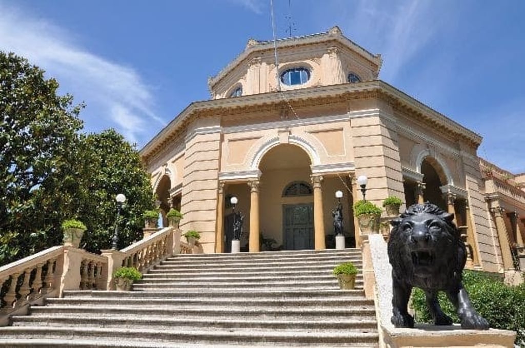 El entorno se diseñó para impresionar, rodeando la casa de unos majestuosos jardines escalonados en terrazas. Cada paseo contaba con su propia especie botánica (cedros en la parte superior, pinos, palmeras y plátanos de sombra) que culminaban en un bucólico y admirable lago con cisnes.