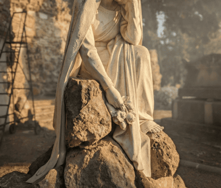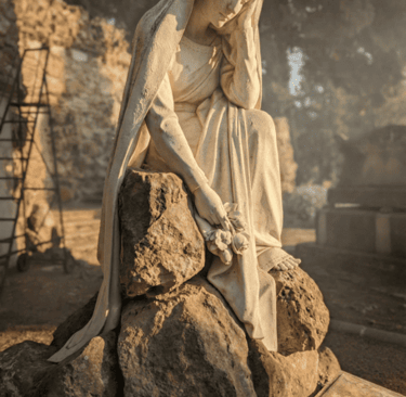 ¿Quién fue Enric Clarasó? Fue uno de los escultores modernistas más importantes de Cataluña. Amigo inseparable de Rusiñol y Casas (con quienes formó el trío bohemio del Cau Ferrat), su obra funeraria es muy apreciada por su sensibilidad y simbolismo, como se aprecia en este panteón.