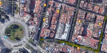 Ubicación: Terrenos entre Travessera de Gràcia, C/ Santaló y C/ de l'Avenir (antigua C/ del Porvenir), Barcelona.